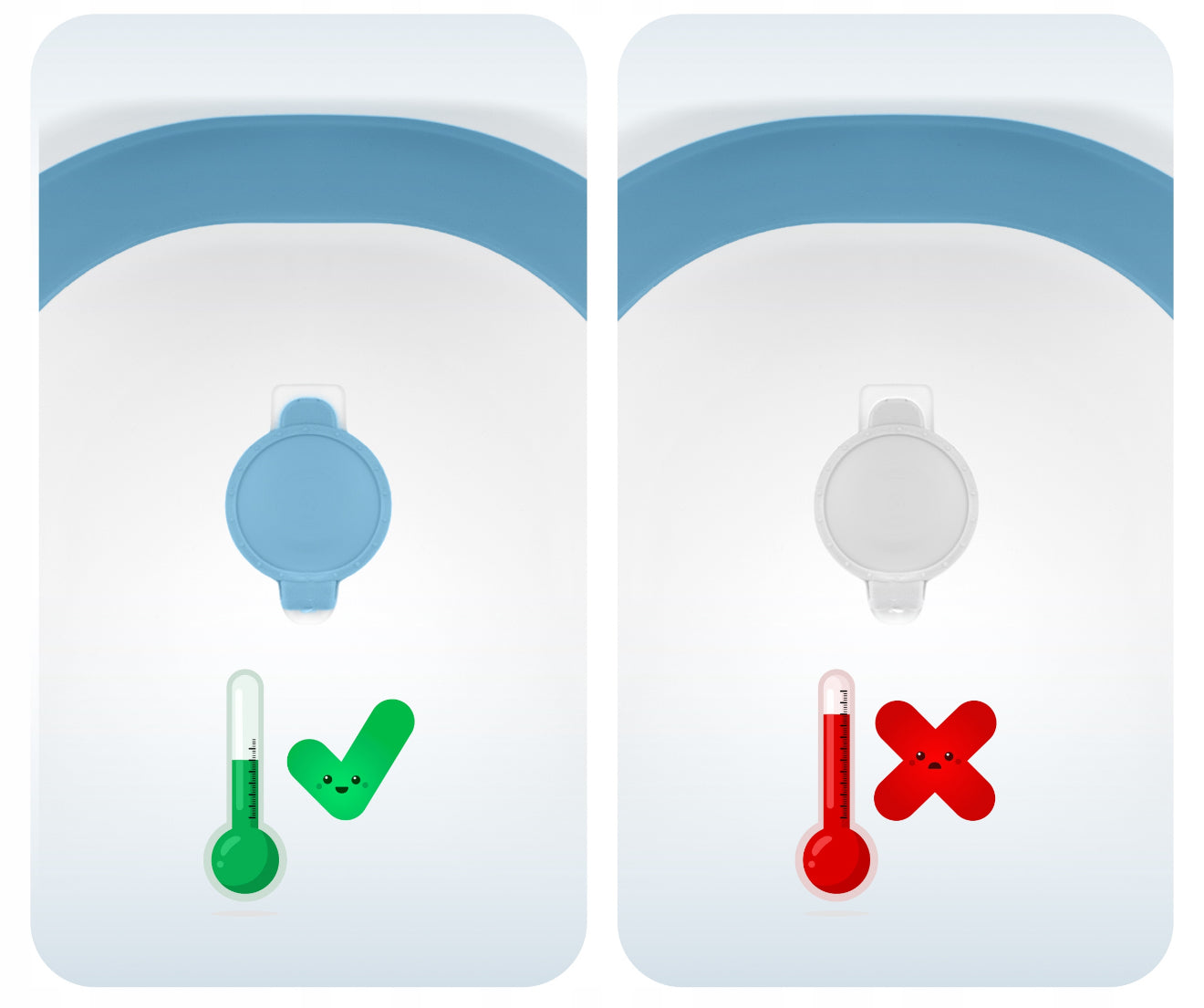 - The stopper changes color if the water temperature exceeds 38°C.