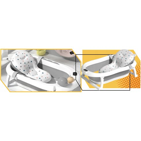 - Safety: the integrated electronic thermometer allows you to accurately monitor the water temperature (accuracy up to 0.1 °C), and the ergonomic cushion ensures stability and comfort for the baby.