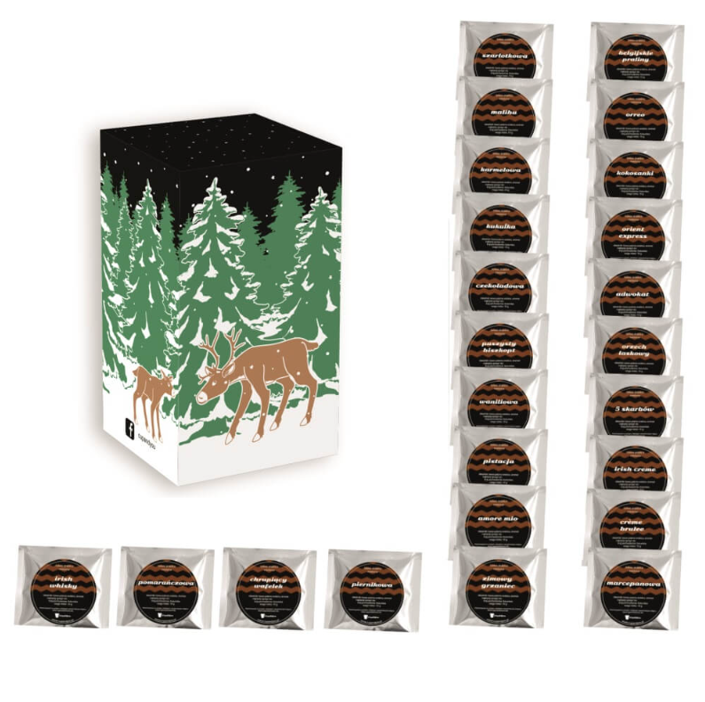 Kiekvieną dieną nuo gruodžio 1 iki 24 tavęs laukia naujas, kvapnus atradimas – 24 skirtingi šviežiai malti arabikos kavos skoniai, supakuoti atskirose elegantiškose pakuotėse.