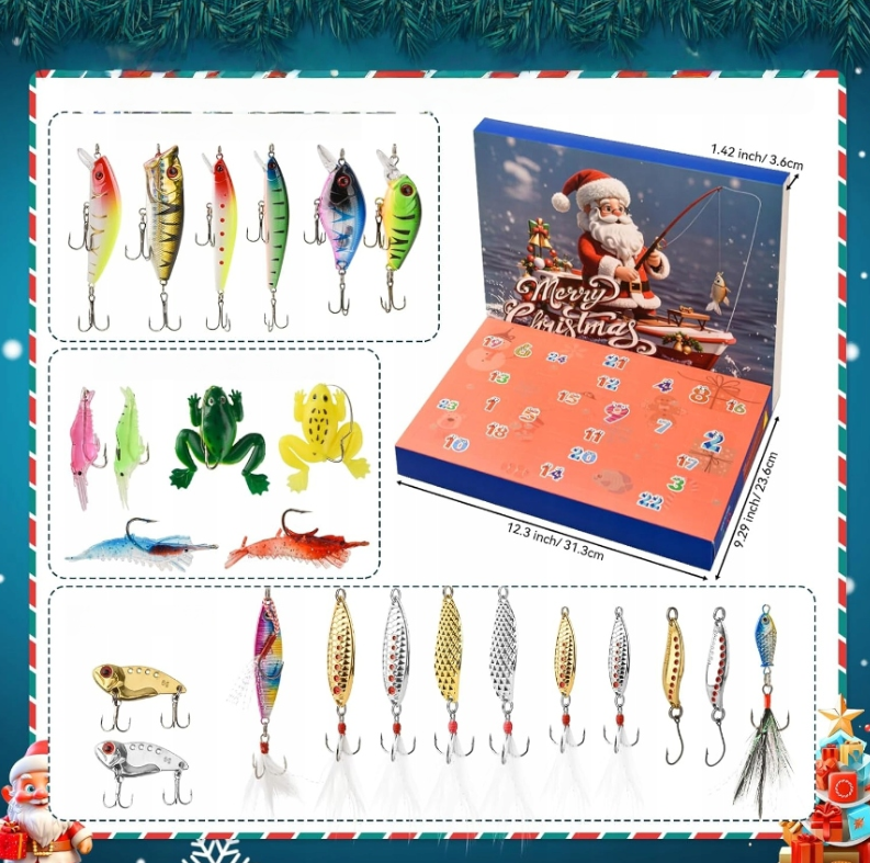 24 dienos siurprizų žvejui: Atrask unikalų advento kalendorių, pripildytą žvejybos masalų – kiekvieną dieną iki Kalėdų tavęs laukia naujas masalas! Kiekviename langelyje slepiasi masalas, kuris papildys tavo žvejybos arsenalą ir padės pasirodyti puikiai net žieminės žūklės metu. Tai originalus būdas skaičiuoti dienas iki švenčių, kuris patiks kiekvienam žvejybos mėgėjui.