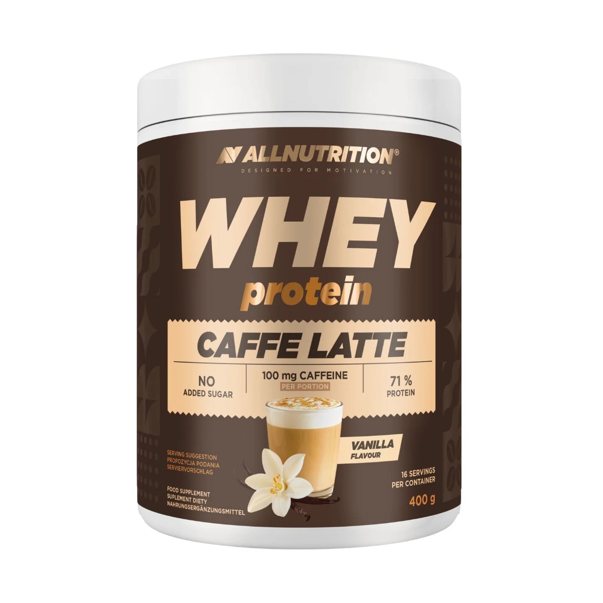 AllNutrition Whey Protein Caffè Latte – Baltyminė Kava su Kofeinu (400 g)