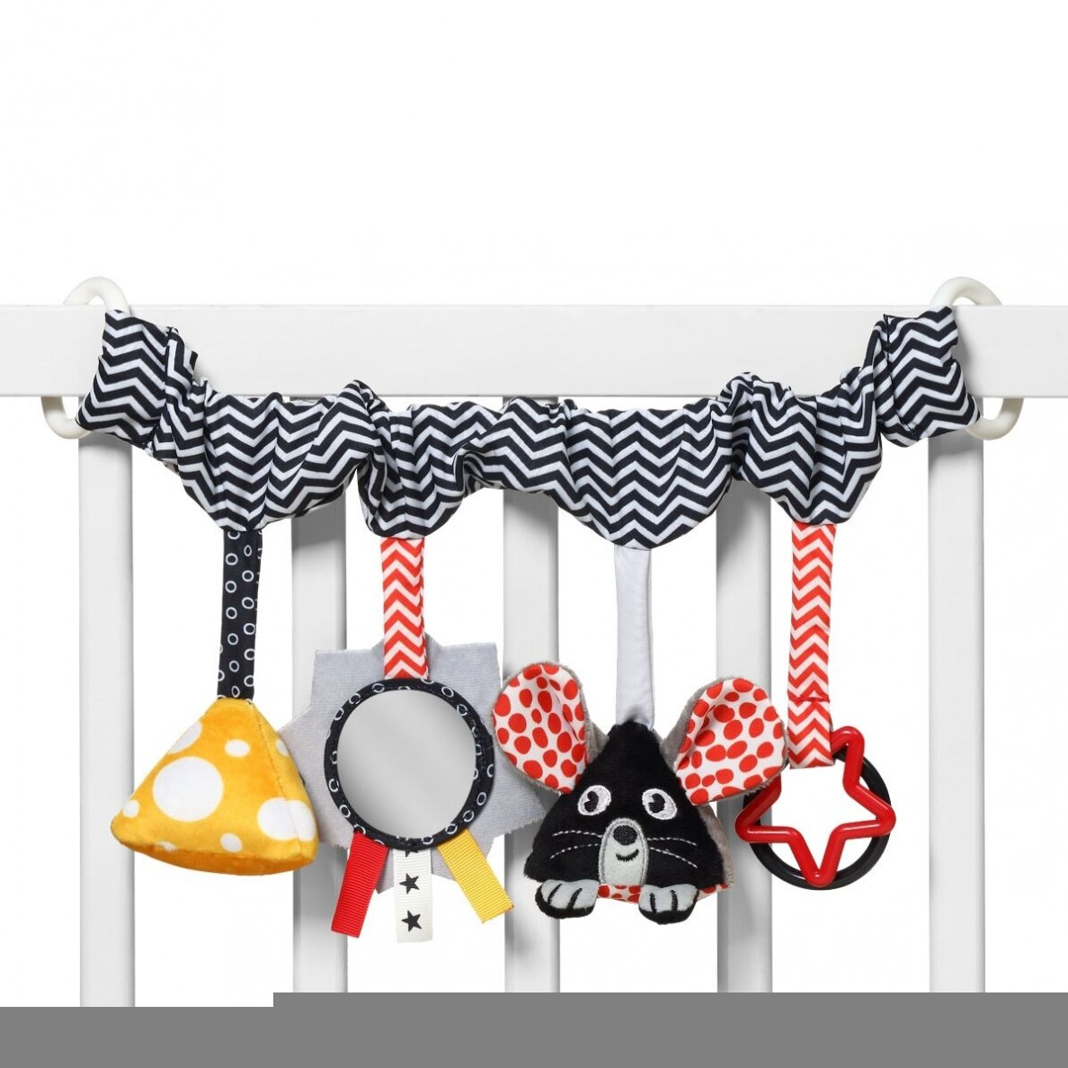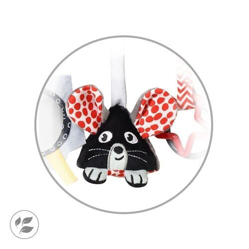 „BabyOno“ kontrastinis žaislas „Sūris ir Pelė“ – tai interaktyvus, sensorinis žaislas, skirtas stimuliuoti kūdikio lytėjimo, regėjimo pojūčius ir motorikos įgūdžius. Jį galima lengvai pritvirtinti prie vežimėlio, lovytės ar automobilinės kėdutės, kad mažylis būtų užimtas ir linksmas pasivaikščiojimų ar kelionių metu.