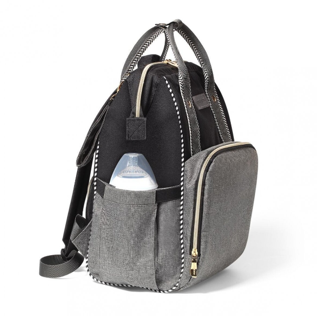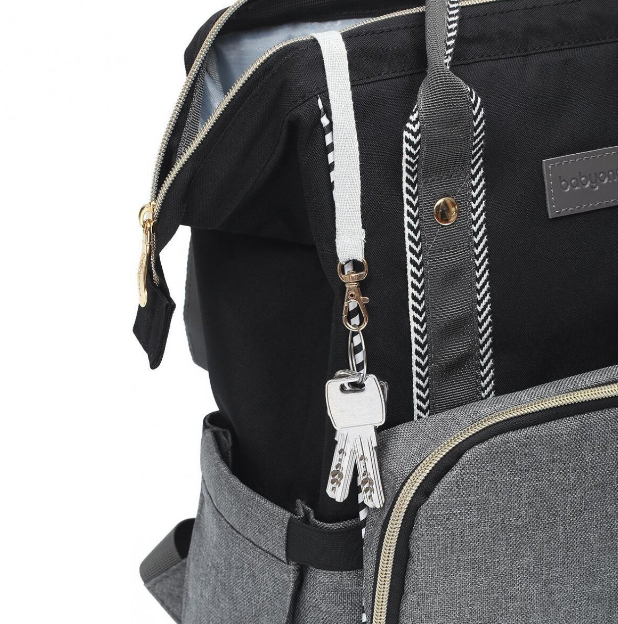 Daugiafunkcinė kuprinė sukurta šiuolaikiškoms motinoms, kurios gyvena aktyvų gyvenimą ir vertina aukštą gaminių kokybę. Praktiška kuprinės forma su 12 specialių kišenių suteikia galimybę patogiai išdėstyti daiktus viduje ir nešioti kuprinę ant nugaros arba prikabinti prie vežimėlio. Be to, lengvai pasiekiamos termo kišenės leidžia išlaikyti norimą Jūsų mažylio maisto temperatūrą. Lengvas tvirtinimas prie vežimėlio, taip pat patogios petnešos užtikrina lengvą pritaikymą naudotojo poreikiams. Stipri išorinė medžiaga ir sustiprinti elementai garantuoja stabilumą, todėl kuprinė yra patvari ir pritaikyta įvairioms naudojimo sąlygoms.