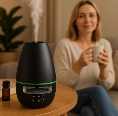 Ultragarsinė technologija paskleidžia švelnią, vėsią miglą – be kaitinimo ir be triukšmo. Pakanka kelių lašų natūralaus eterinio aliejaus, kad erdvė prisipildytų aromato, ramintų pojūčius ir skaidrintų mintis. Tai namų aromaterapija su SPA efektu – bet kuriuo paros metu.