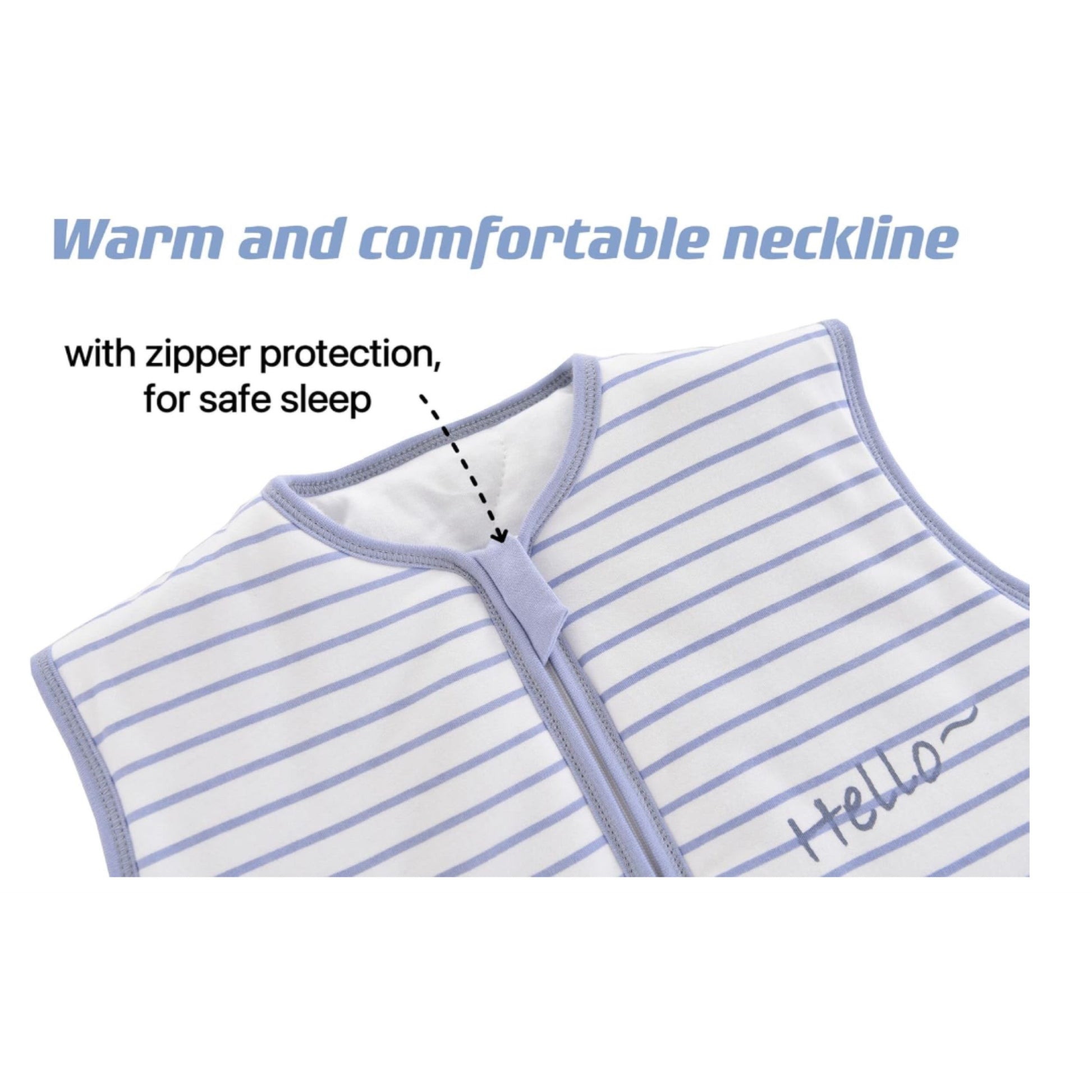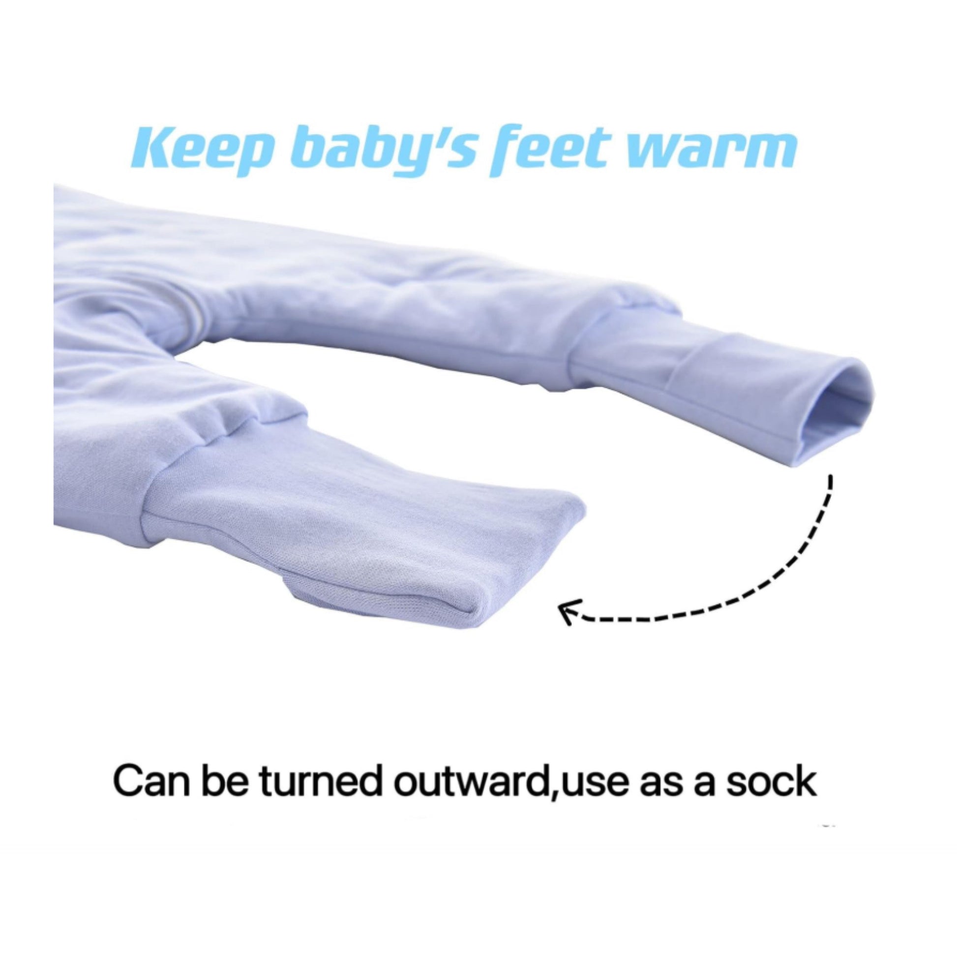 Miegmaišis su kojytėmis: leidžia laisvai judėti ir patogiai miegoti „varlytės“ poza. Galima užlenkti ar atlenkti kojyčių dalį – uždenkite pėdutes miegui arba atidenkite žaidimui.