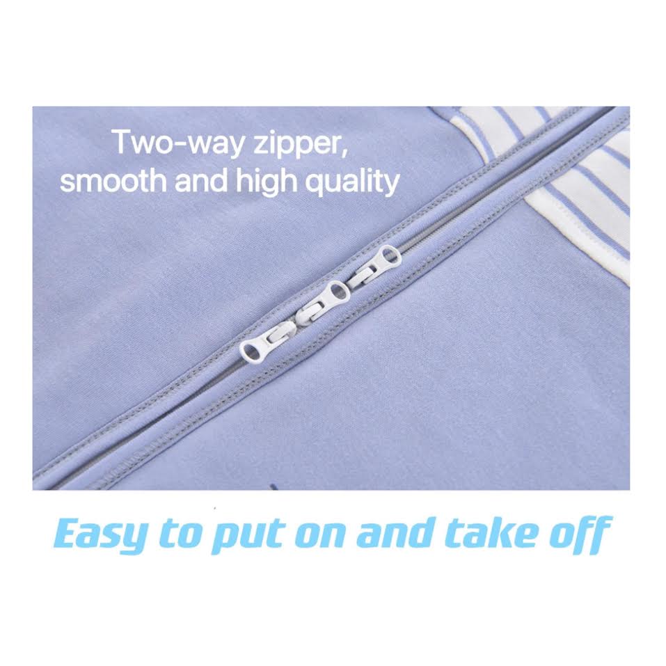 Patogus trijų užtrauktukų dizainas: leidžia lengvai pakeisti sauskelnes neišbudinant kūdikio. Užtrauktuko viršuje esanti audinio apsauga saugo smakriuką.