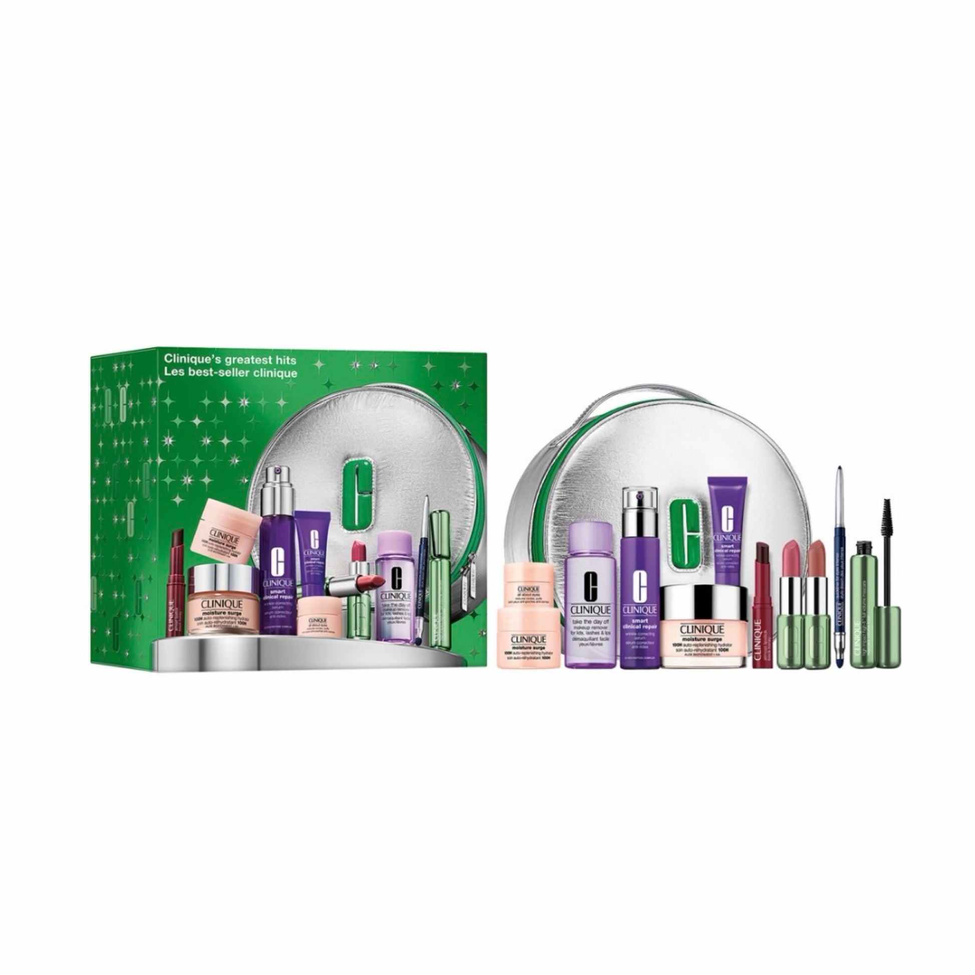 „Clinique“ Holiday Greatest – Šventinis kosmetikos rinkinys su dovanų dėžute