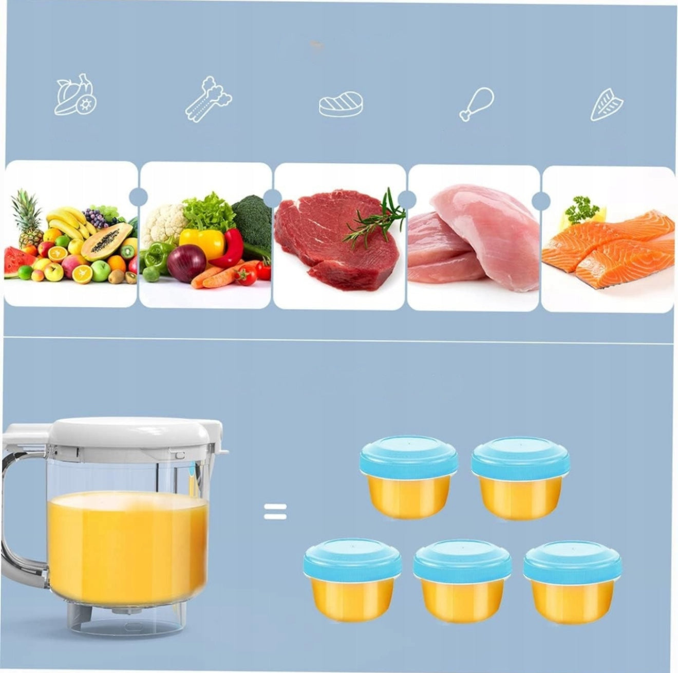 Atraskite išmanų pagalbininką, kuris palengvins kasdienį kūdikių maisto ruošimą! Šis 5 in 1 daugiafunkcis homogenizatorius ir garintuvas sukurtas specialiai tėvams, siekiantiems greitai ir sveikai paruošti maistą savo mažyliams.