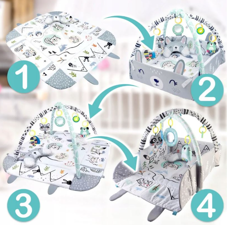 Paprastas žaidimų kilimėlis – nuėmus lankus tampa erdvia vieta laisvam žaidimui.
