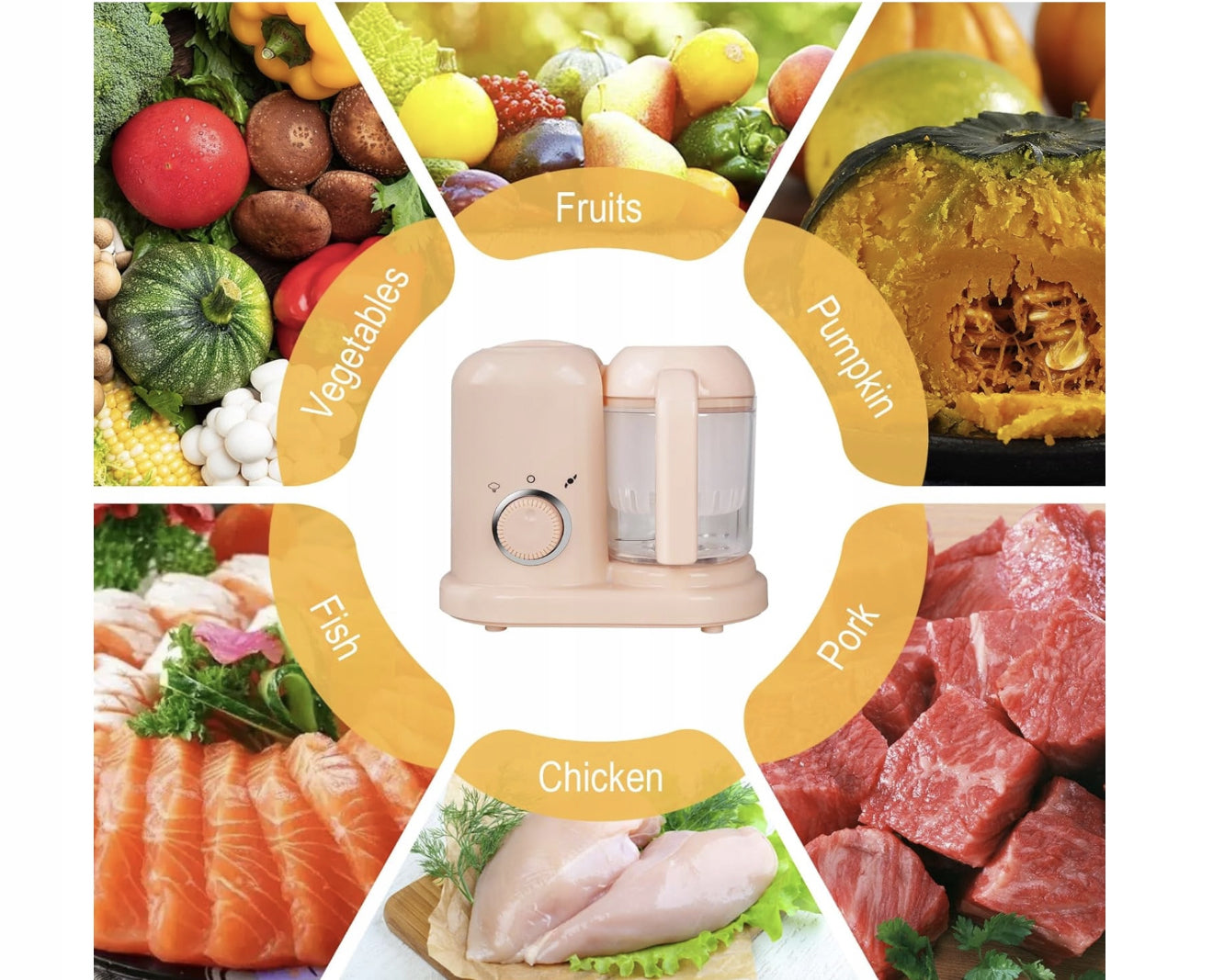 Šis 4in1 maisto ruošimo kombainas viename įrenginyje sujungia garinimo, maišymo, šildymo ir atitirpinimo funkcijas. Juo lengvai paruošite daržovių, vaisių, žuvies ar mėsos patiekalus kūdikiui – vos per kelias minutes.