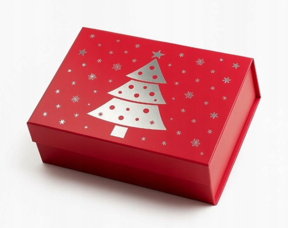 - Pakuotė: tvirta kartoninė dėžė su magnetiniu uždarymu, pripildyta raudonų šventinių drožlių