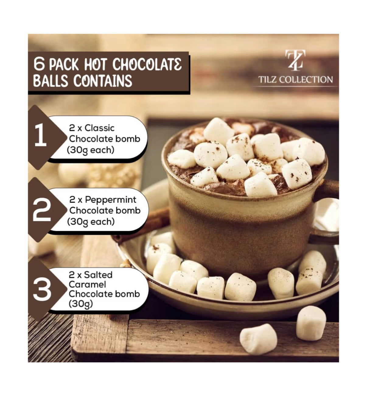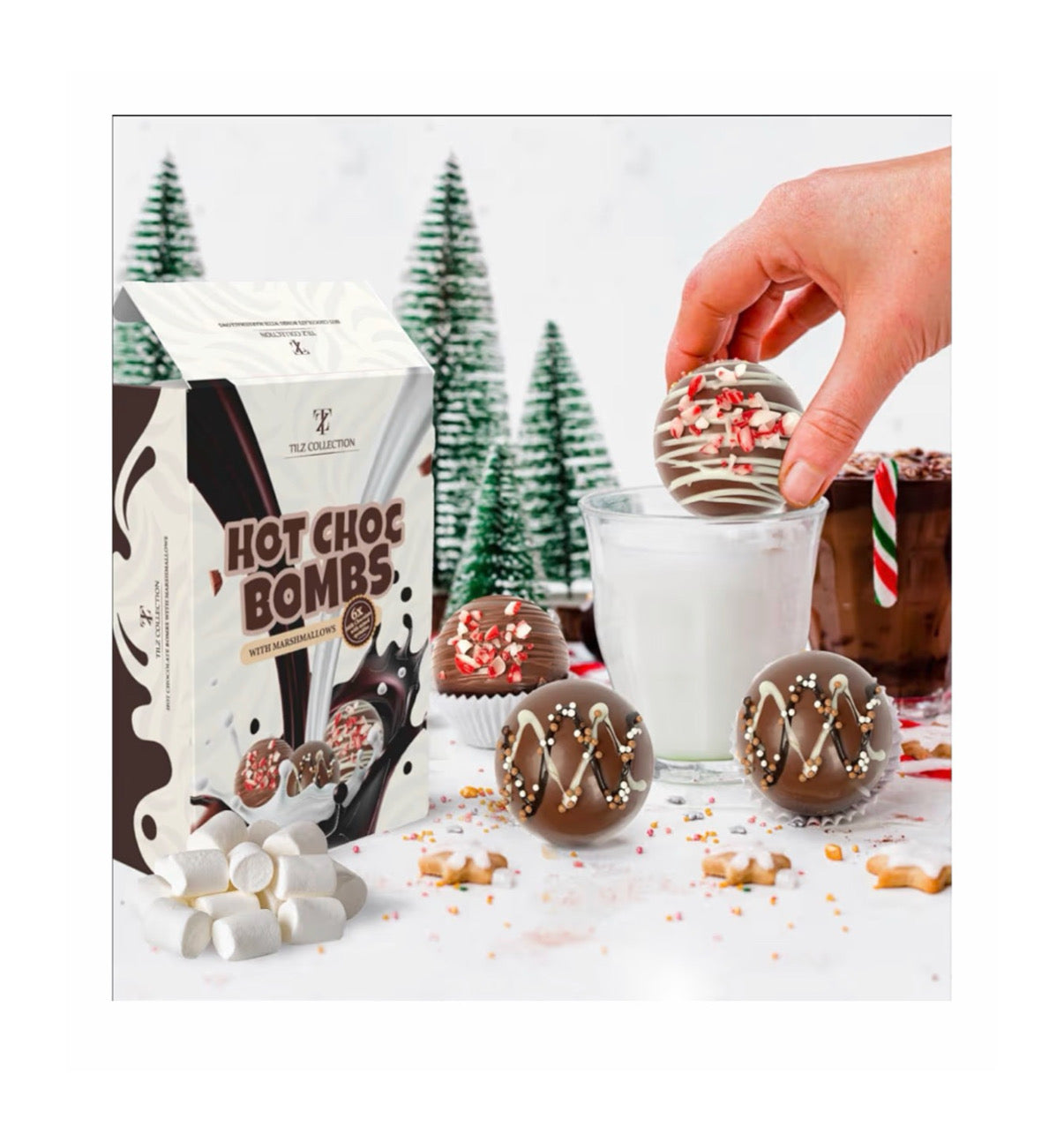 Sukurk tikrą žiemos stebuklą vos vienu puodeliu! Mūsų Hot Choc Bombs – tai gardžios tamsaus šokolado bombos, kurių viduje slepiasi purūs mini zefyriukai. Užpilk karštu pienu ir stebėk, kaip šokoladinė bomba tirpsta, atsiskleidžia sodrus kakavos skonis, o iš vidaus iššoka zefyriukai. Tobulas derinys žiemos vakarams, Kalėdų dovanoms ir jaukioms akimirkoms.