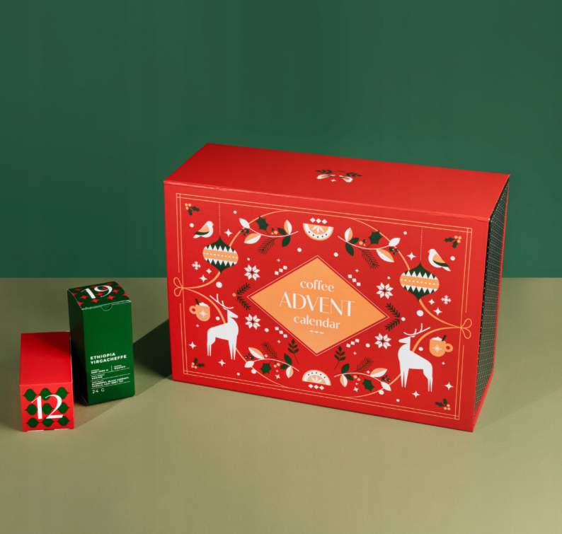 Kiekvieną gruodžio rytą pasitik su nauju kavos aromatu iš skirtingų pasaulio kampelių – nuo Etiopijos kalnų iki Brazilijos plantacijų. Šis prabangus rinkinys talpina 24 pakuotes po 24 g šviežiai skrudintų kavos pupelių, iš kurių galėsi paruošti net dvi puodelius nepakartojamos kavos kasdien.