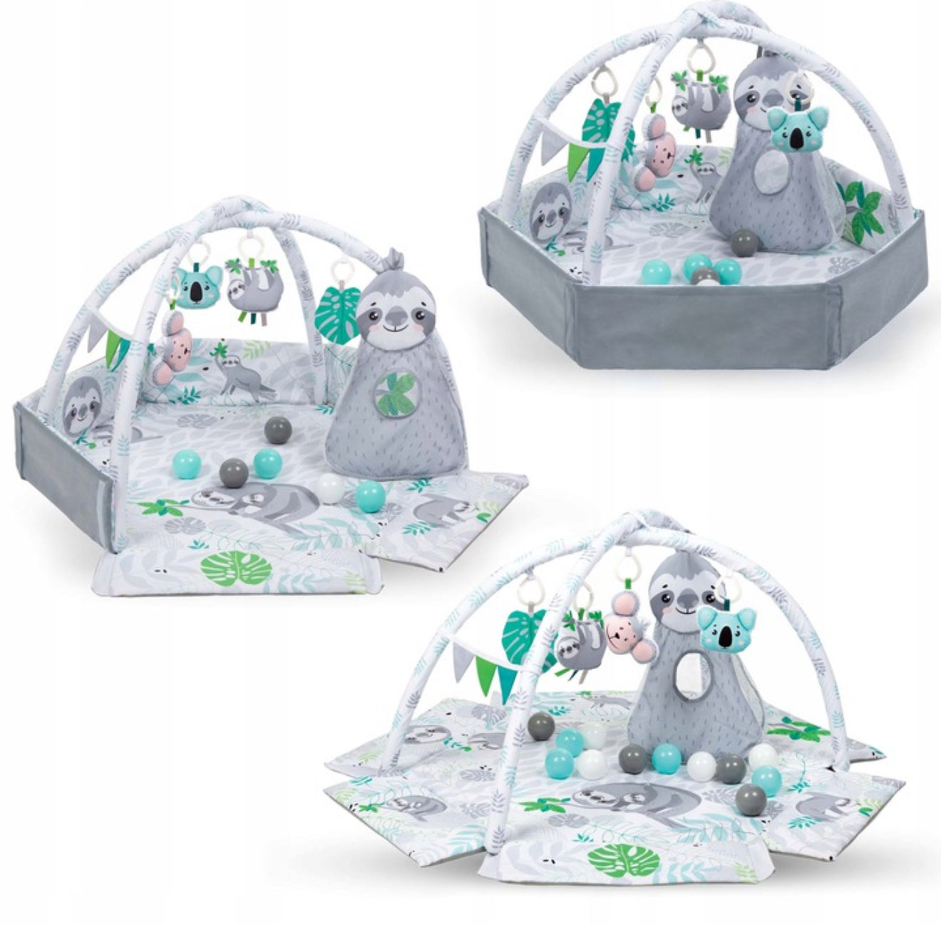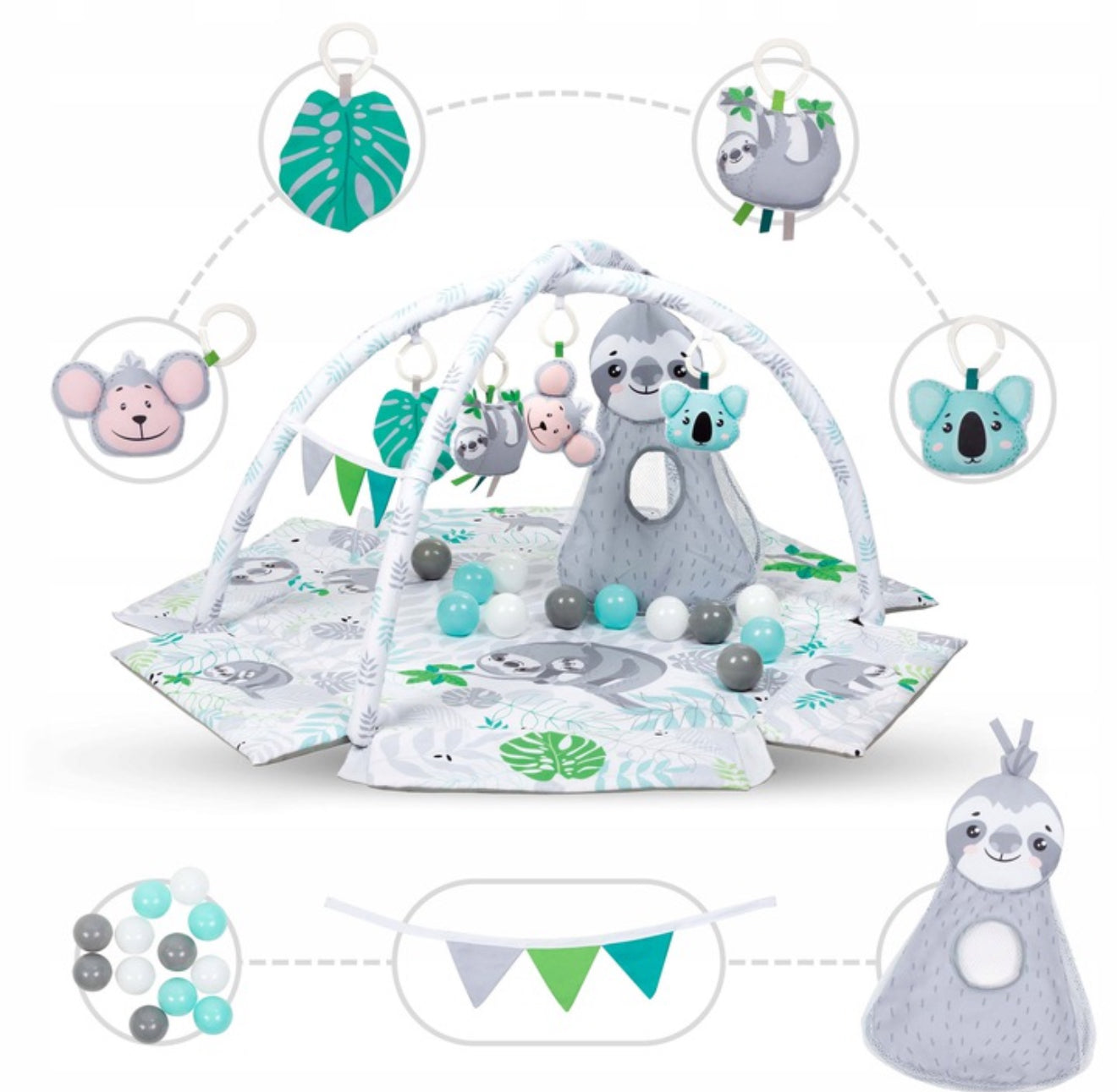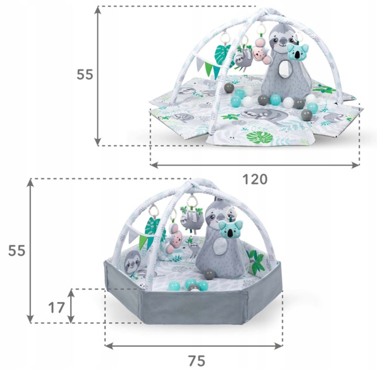 - Rinkinyje: kilimėlis, lankai su žaislais, 12 kamuoliukų, maišelis, 5 žaislai
