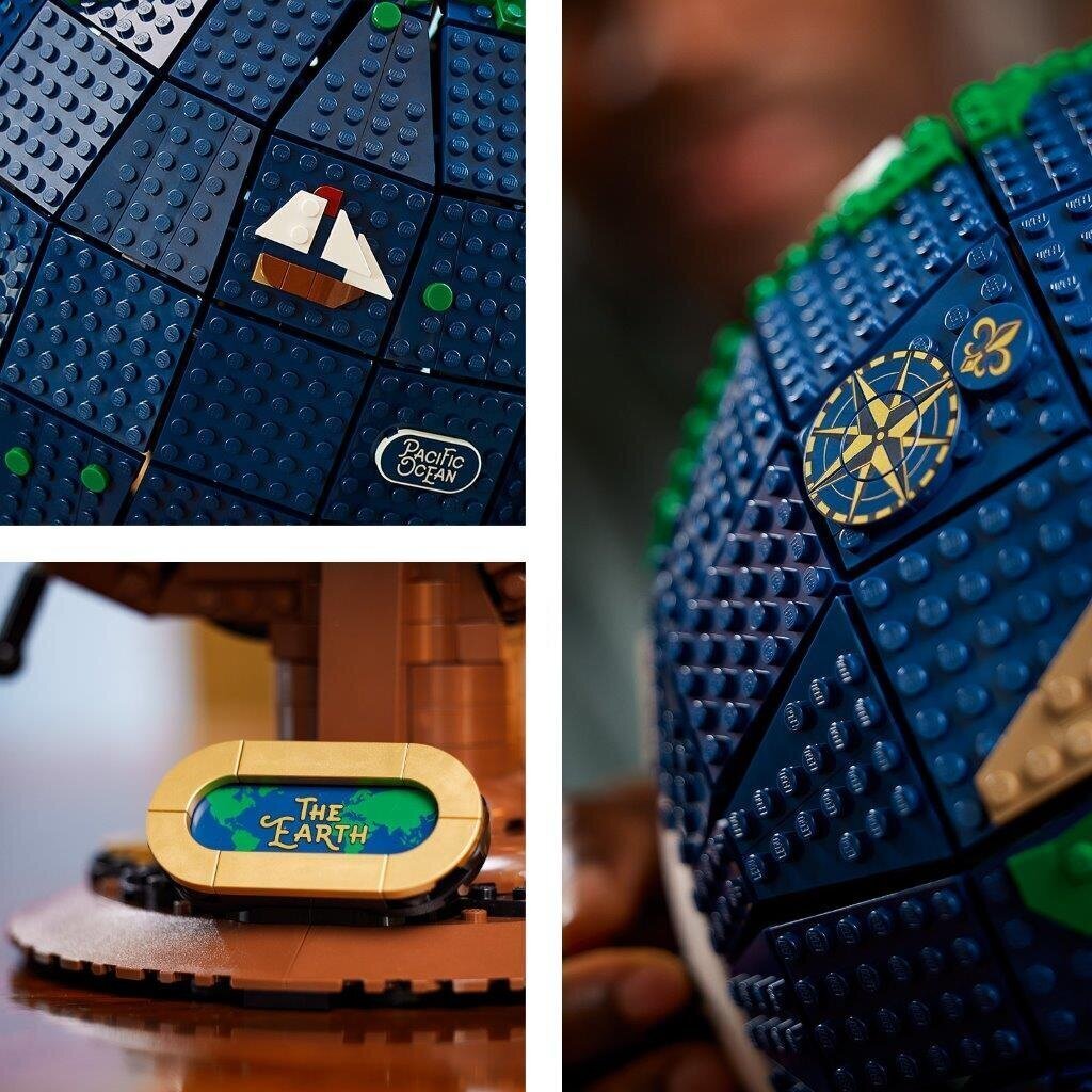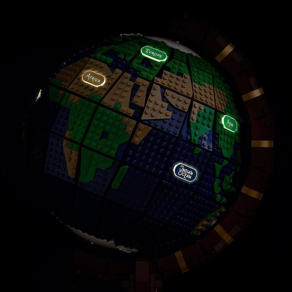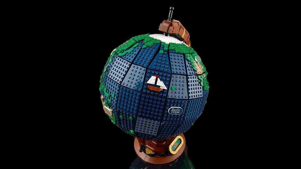Modelis pasižymi autentiškomis detalėmis, įskaitant tamsioje švytinčias plyteles su žemynų ir vandenynų pavadinimais, dekoratyvinius laivo ir kompaso simbolius bei elegantišką stovelį su lentele „The Earth“. Tai ne tik LEGO rinkinys, bet ir stilinga interjero puošmena.