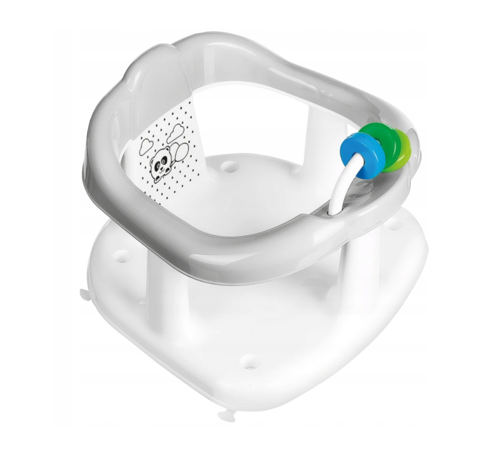 Spalvingi sukami ratukai-žaisliukai ir mielas pandos piešinys skatina vaiką ramiai sėdėti bei paverčia maudynes malonesne patirtimi. Vidinės nugarėlės briaunos padengtos minkštu elastomeru, kuris saugo jautrią kūdikio odą nuo nutrynimų. Ši kėdutė leidžia tėvams patogiai ir be didelių pastangų nuplauti visą mažylio kūną.