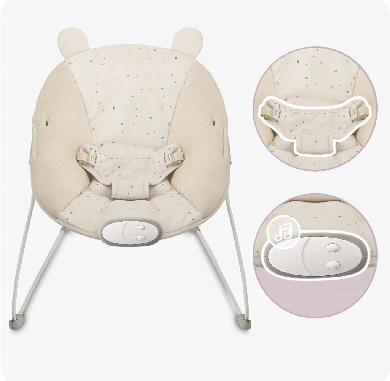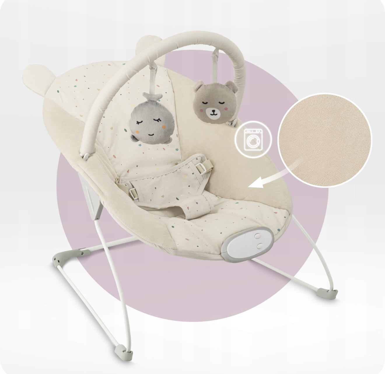 „MoMi Glossy“ vibruojantis gultukas – tai komfortiška ir saugi vieta jūsų mažyliui nuo pirmųjų gyvenimo dienų. Jis užtikrina raminantį poilsį, linksmą laiką su žaislais ir patogumą tėvams.
