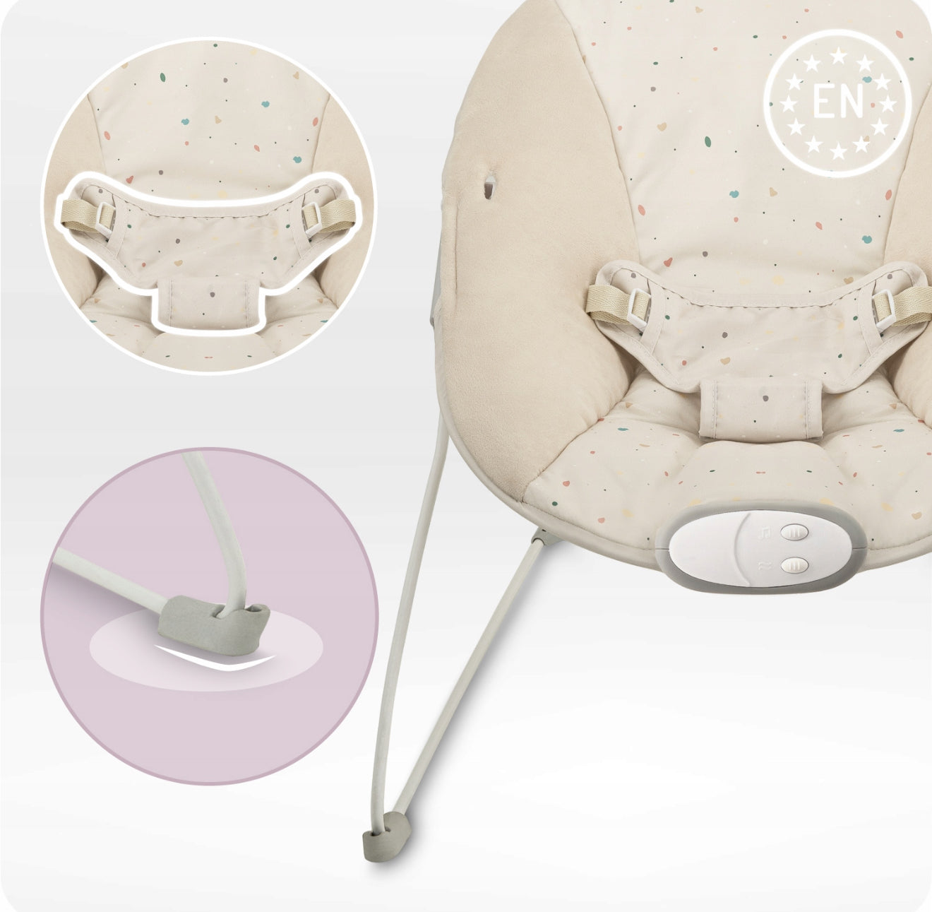 - 3 taškų saugos diržai ir neslystančios kojelės – maksimalus saugumas;