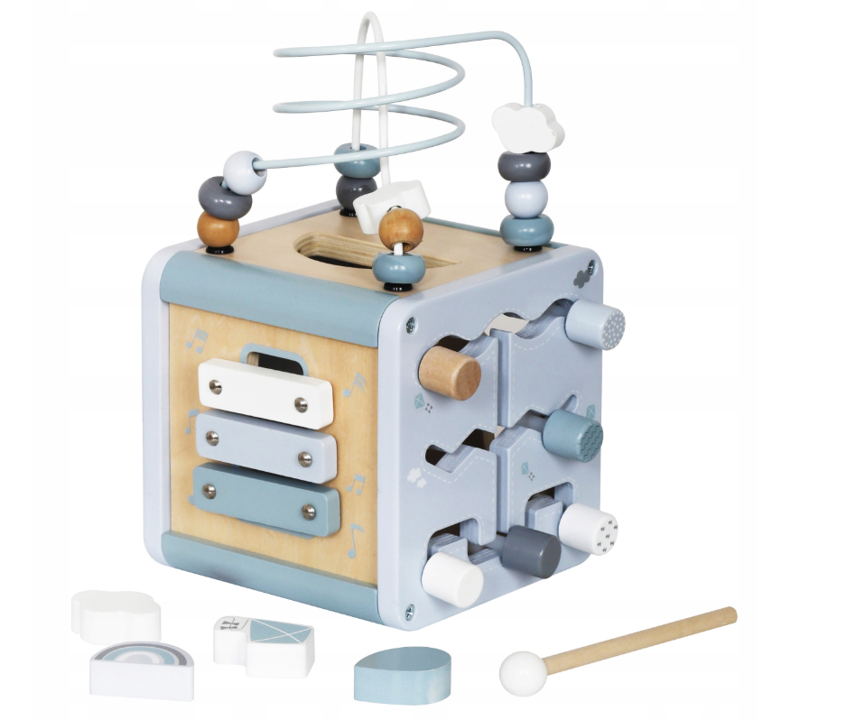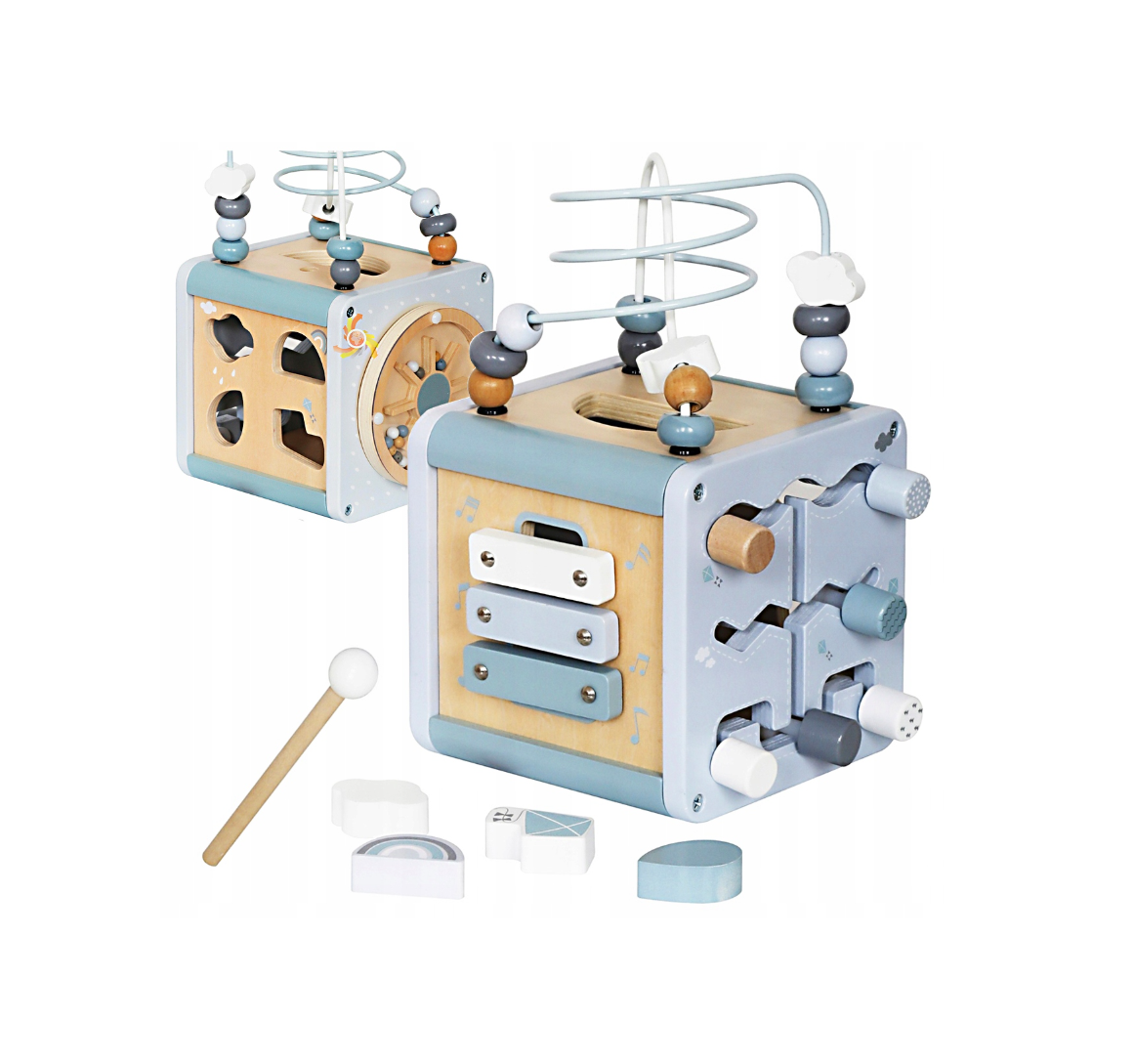Atraskite vieną žaislą, kuris pakeičia septynis! MONTESSORI medinis sensorinis interaktyvus kubas – tai 7 veiklų rinkinys viename kompaktiškame žaisle, skirtas vaikams nuo 18 mėn. Jis lavina smulkiąją motoriką, koncentraciją, loginį mąstymą, muzikinį klausą ir rankų–akių koordinaciją. Puikus pasirinkimas tėvams, norintiems kokybiško lavinamojo žaislo be ekranų ir nereikalingo chaoso kambaryje.