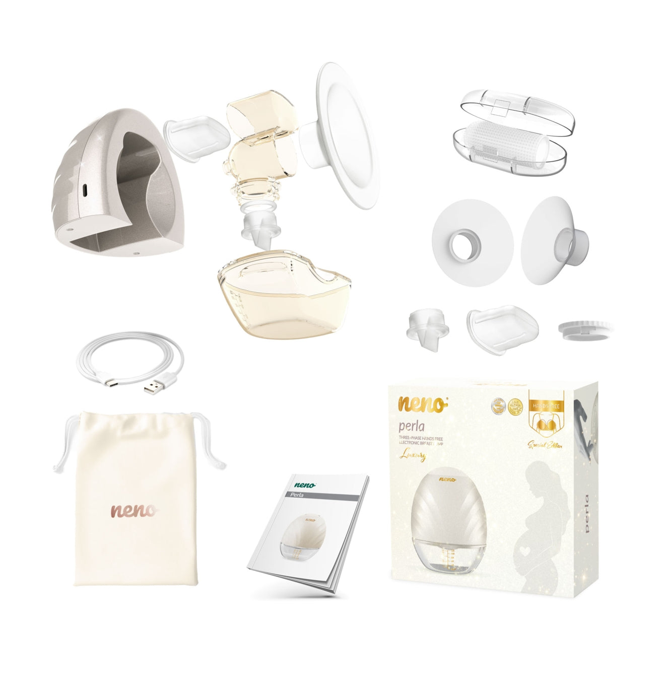 Neno Perla – tai naujoviškas, belaidis, laisvų rankų pientraukis, leidžiantis jums atlikti kitus darbus pieno traukimo metu. Lengvas ir kompaktiškas korpusas lengvai telpa į žindymo liemenėlę, visiškai atlaisvindamas mamos rankas.