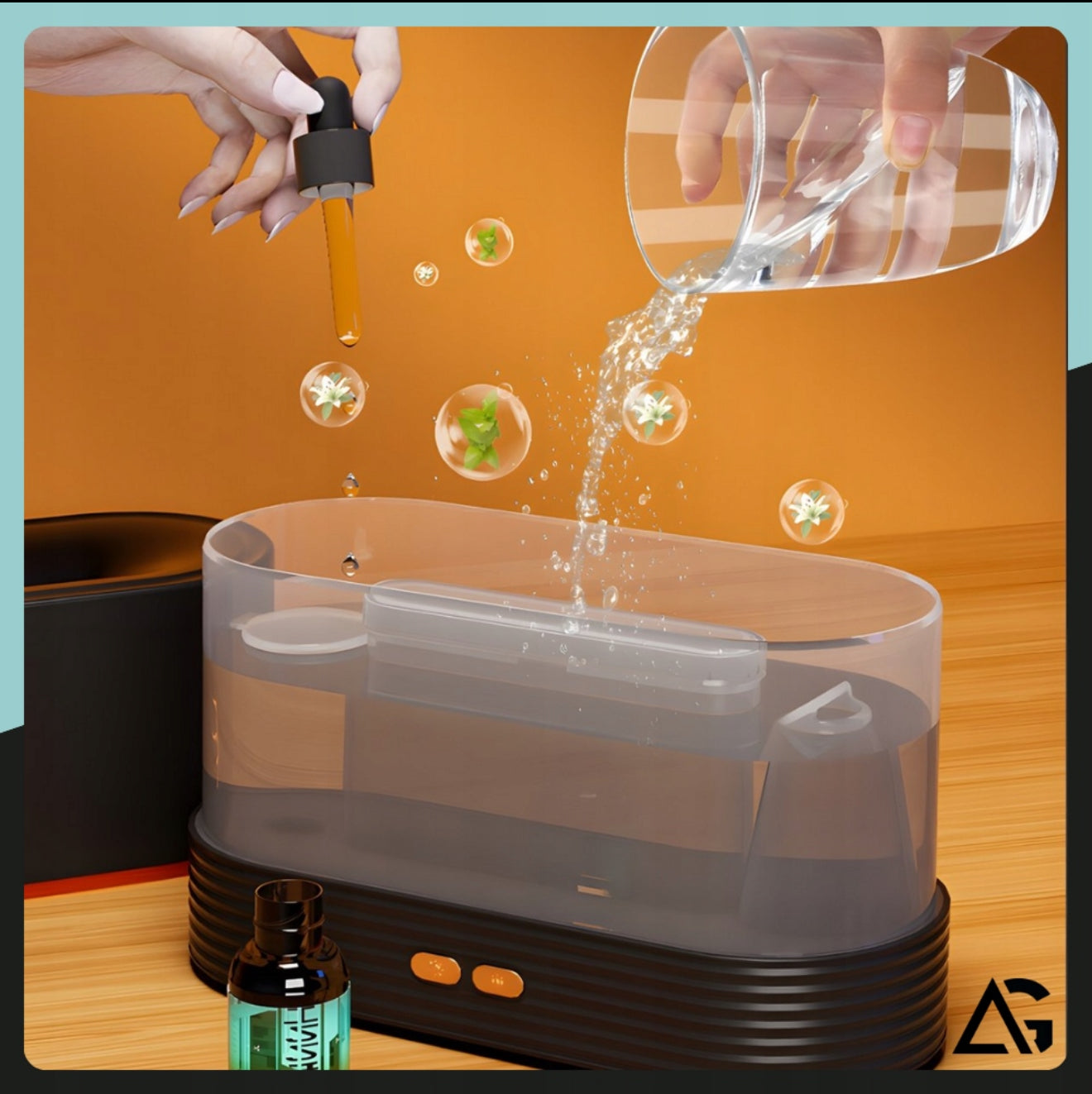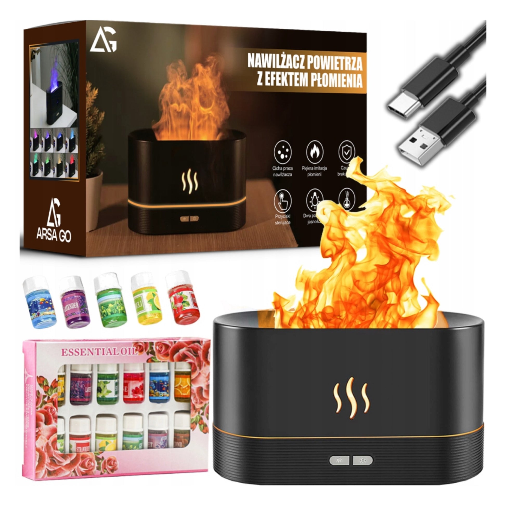 Oro drėkintuvas su liepsnos imitacija + 12 aromatinių aliejų