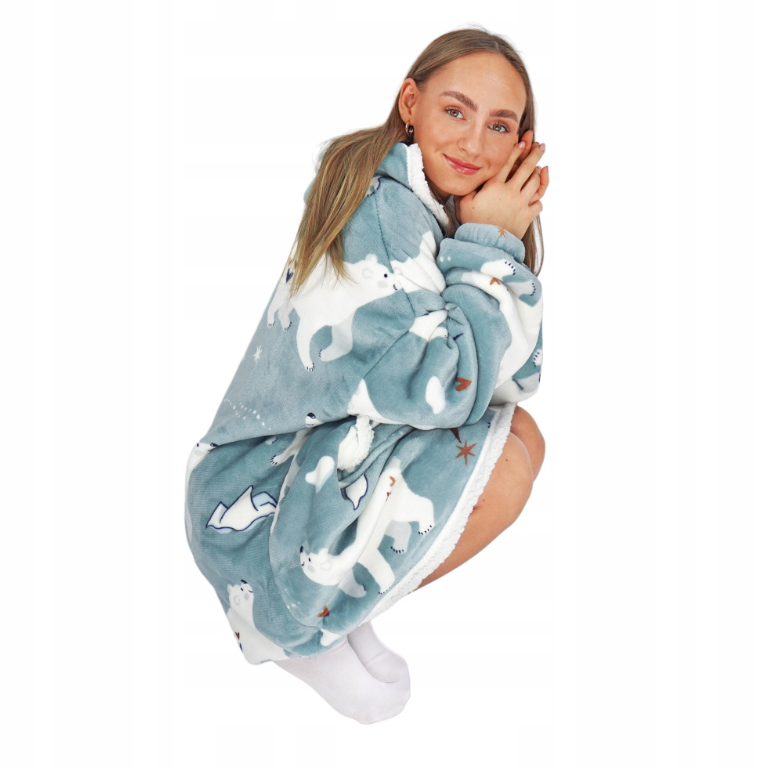 Pledas – džemperis „Pluffy Bear“ XXL – šiltas oversize 2in1 su gobtuvu