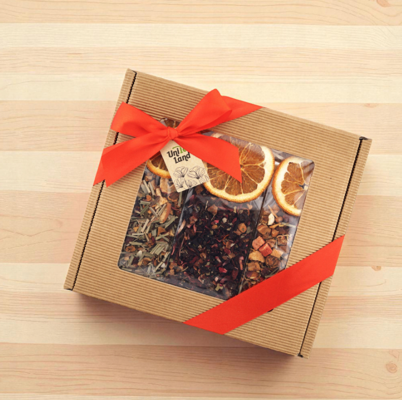 Prabangus vaisinių arbatų rinkinys dovanų dėžutėje – rankų darbo pakuote