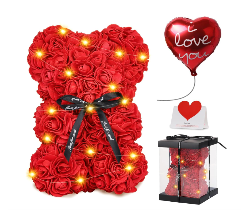 Šis rožinis rožių meškiukas su švieselėmis – tai jausminga, elegantiška ir paruošta dovana, kuri kalba už Jus 💖