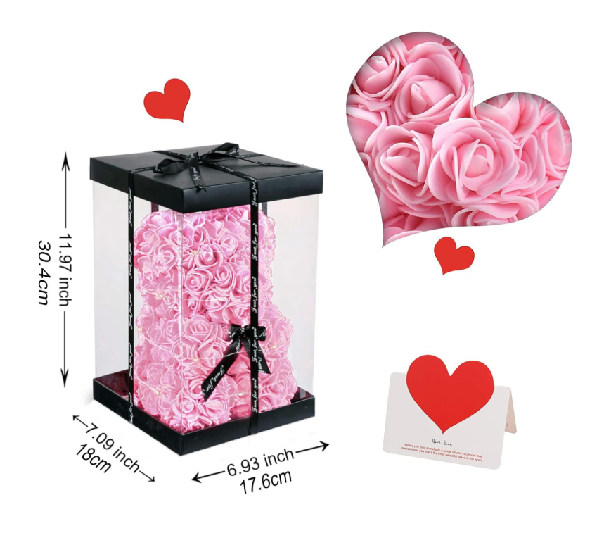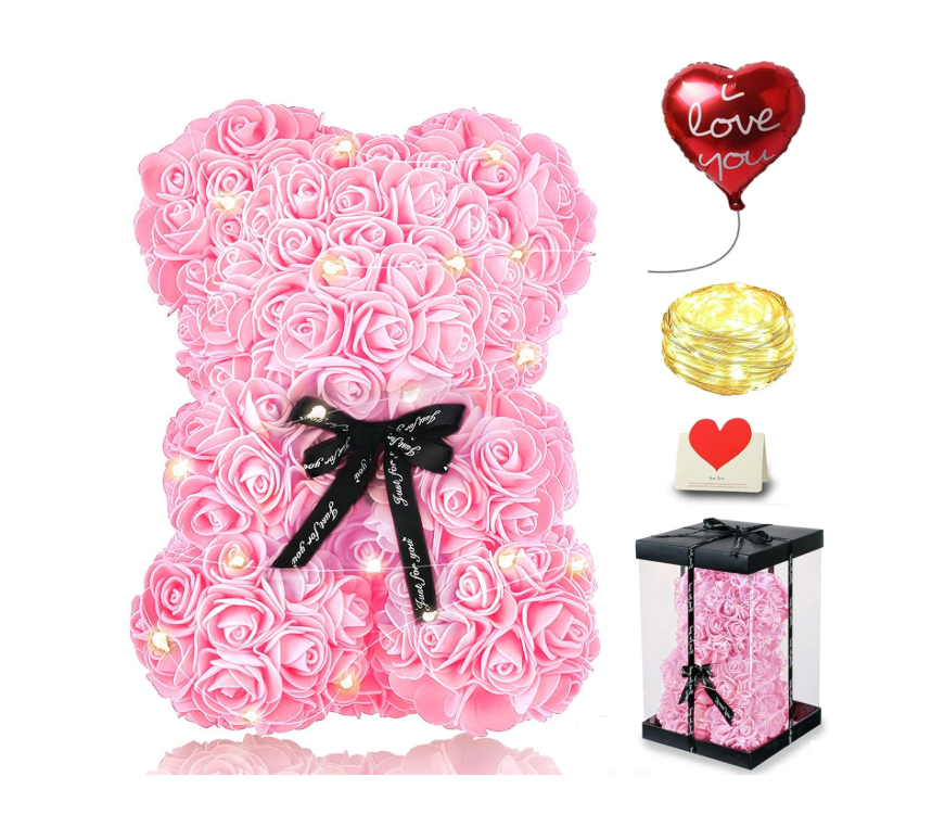 Šis rožinis rožių meškiukas su švieselėmis – tai romantiška, miela ir paruošta dovana, kuri perteikia jausmus be žodžių 💖