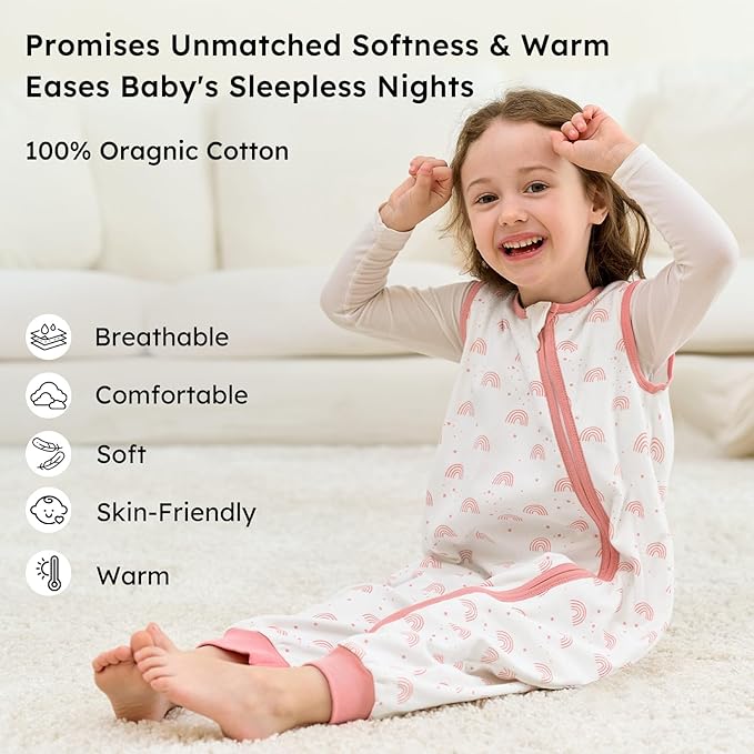 Suteikite savo mažyliui šiltą ir saugų miegą su „Unnivoll“ medvilniniu miegmaišiu su kojelėmis. Pagamintas iš 100 % švelnios, kvėpuojančios medvilnės, šis 1.0 Tog miegmaišis idealiai tinka pavasariui, vasarai ir rudeniui (naudojimui 20–24 °C temperatūroje).