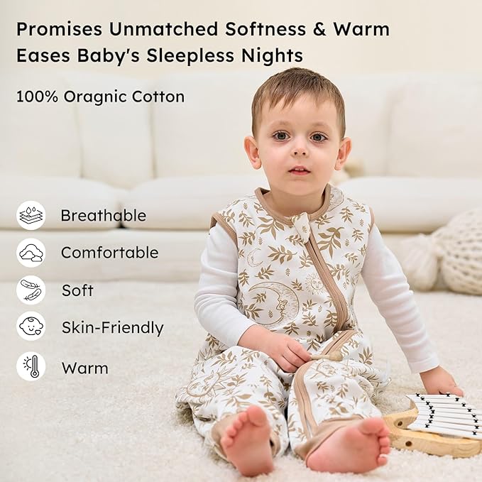 Suteikite savo mažyliui šiltą ir saugų miegą su „Unnivoll“ medvilniniu miegmaišiu su kojelėmis. Pagamintas iš 100 % švelnios, kvėpuojančios medvilnės, šis 1.0 Tog miegmaišis idealiai tinka pavasariui, vasarai ir rudeniui (naudojimui 20–24 °C temperatūroje).