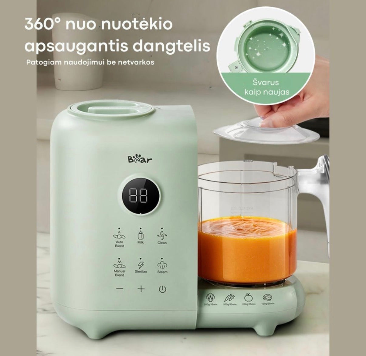 Šis daugiafunkcis kūdikių maisto ruošimo aparatas pakeičia kelis virtuvės prietaisus: