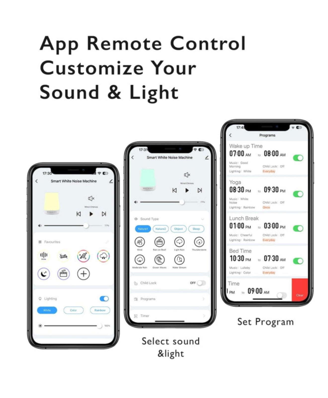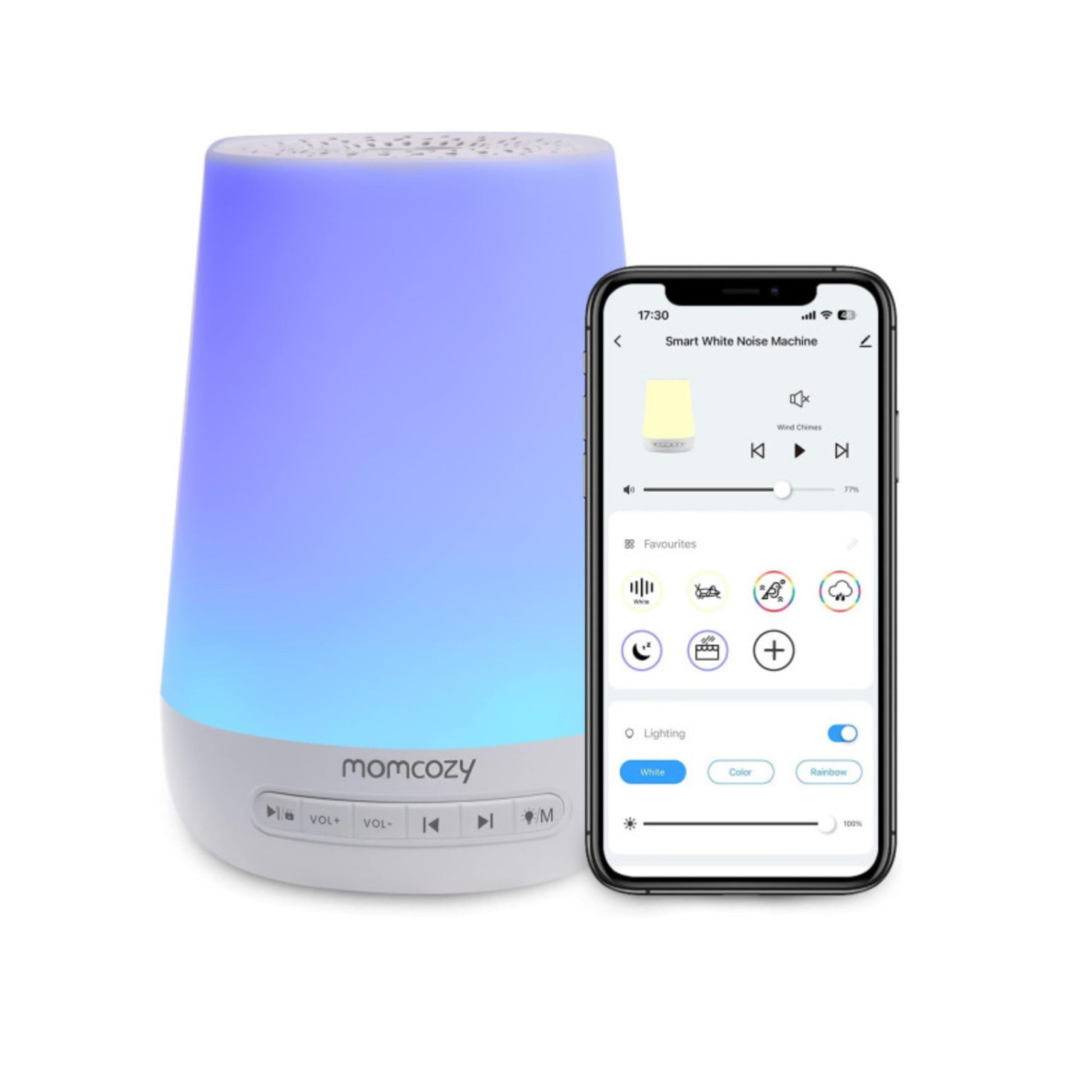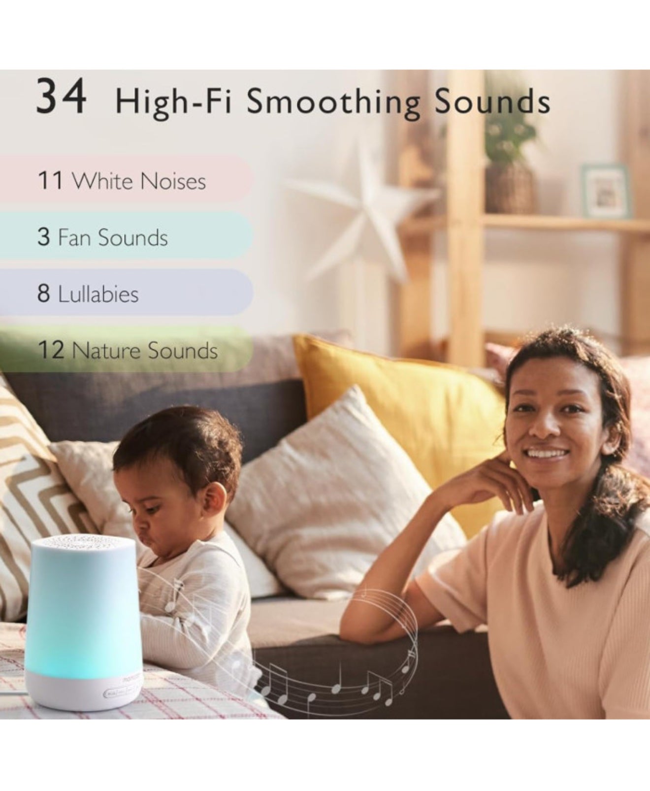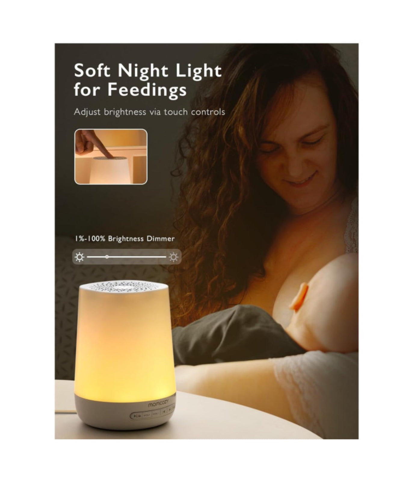 Atraskite ramybę su MOMCOZY baltojo triukšmo aparatu–šviestuvu. Įrenginys siūlo net 34 skirtingus garsus – nuo baltojo triukšmo iki lopšinių ir gamtos garsų, o 7 spalvų LED lemputė sukuria jaukią atmosferą Jūsų mažyliui ir visai šeimai. Patogus nuotolinis valdymas telefonu, reguliuojamas garsumas, laikmatis ir įkraunama baterija leidžia aparatą naudoti tiek namuose, tiek kelionėje.