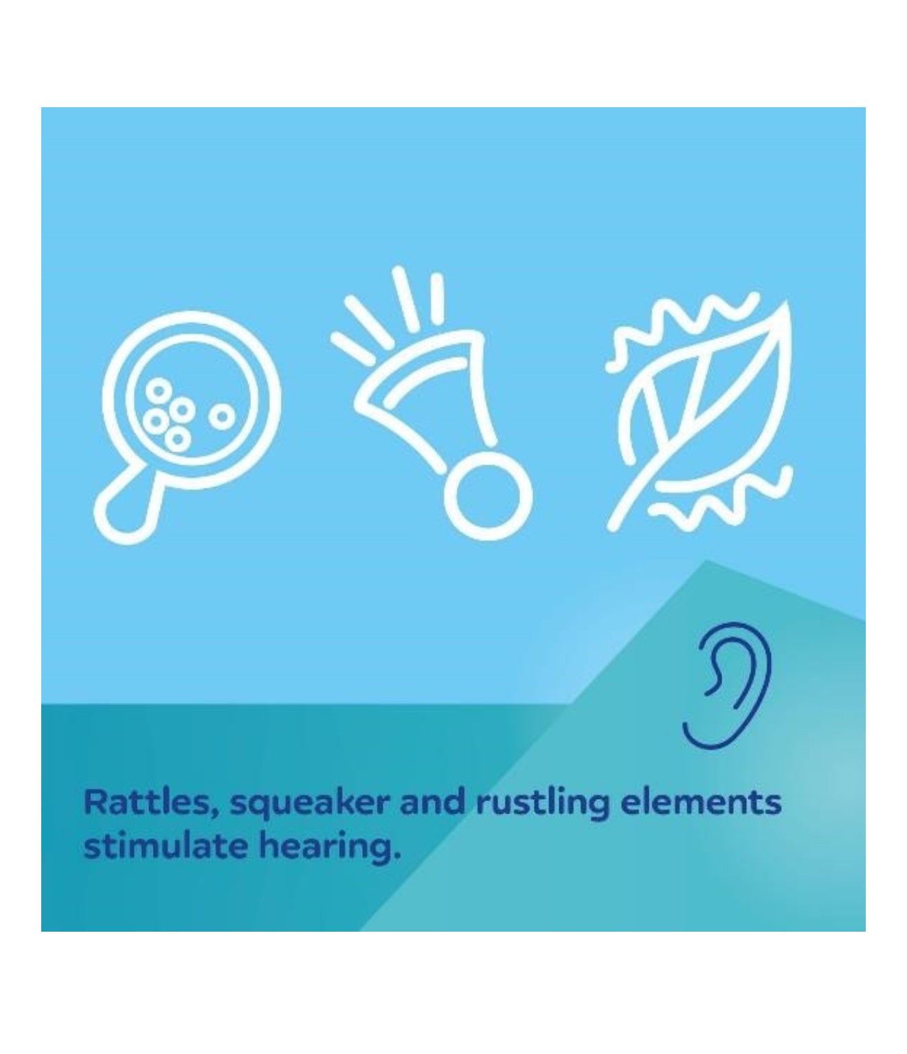 - Barškučiai, girgždėjimo ir šiugždėjimo elementai skatina klausos pojūtį.