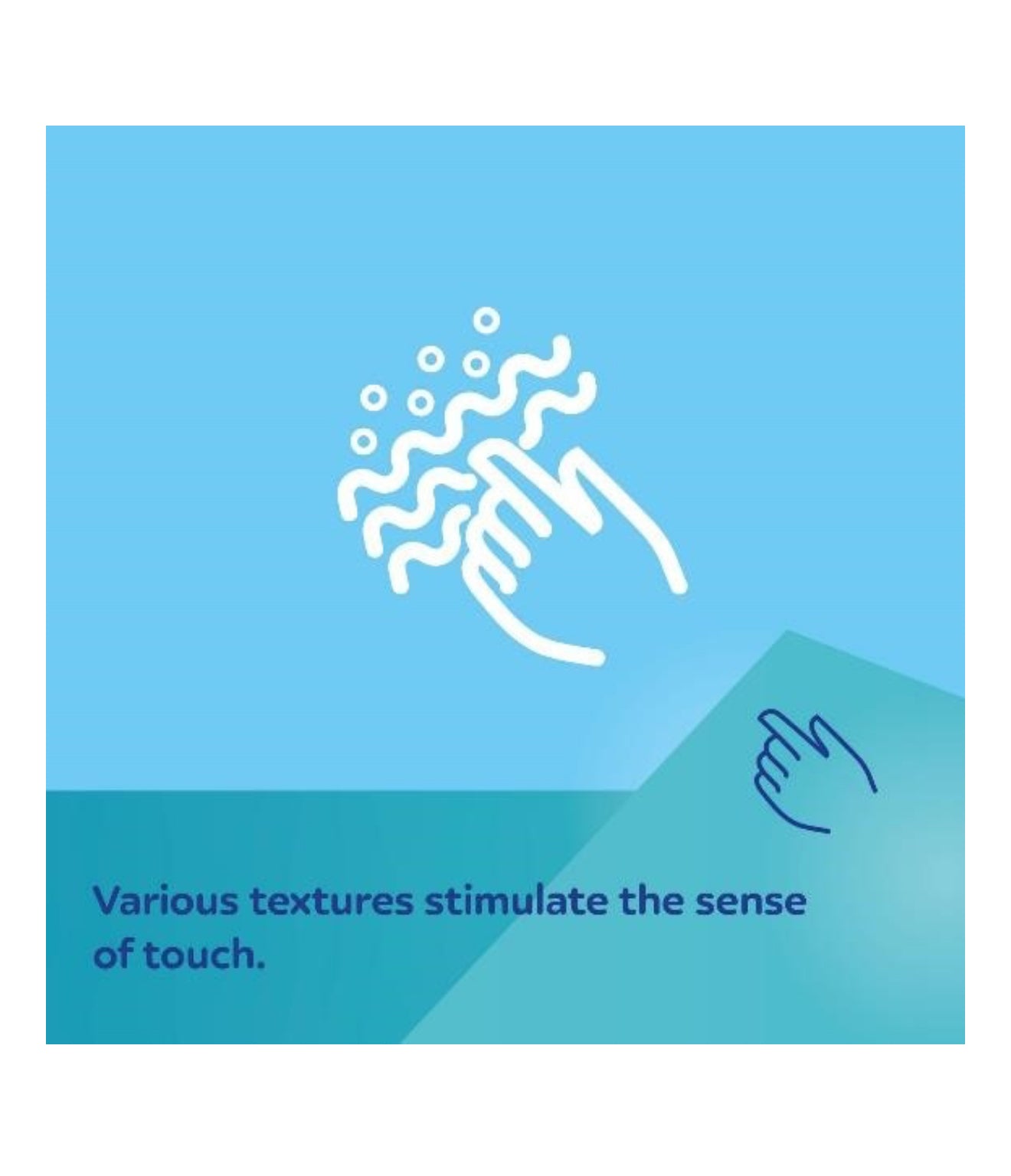 - Įvairios tekstūros skatina lytėjimo pojūtį.