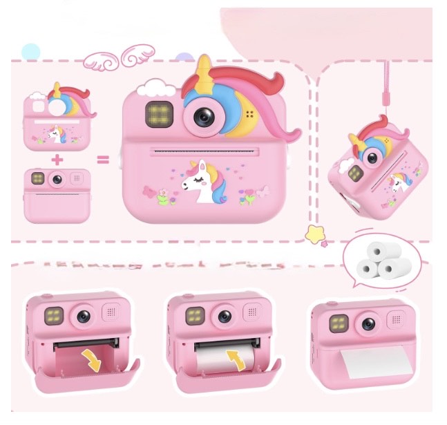 Ši žavinga vaikiška momentinė kamera „Unicorn“ – tai nuostabus žaislas ir edukacinis įrankis viename. Ji leidžia vaikams akimirksniu įamžinti svarbiausias akimirkas ir iškart jas atsispausdinti – be laukimo ir be papildomų kasečių. 1080P HD kokybės vaizdas, 48 MP selfie kamera ir daugybė kūrybinių funkcijų suteikia mažiesiems tikrą fotografijos džiaugsmą.